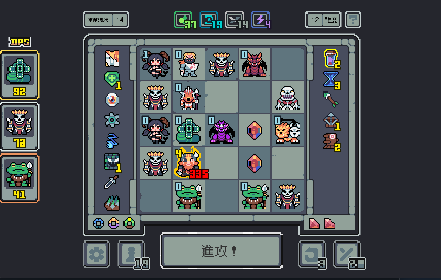 以下是成功通關過的玩法,運氣比重很大 盡量疊Buff,玩起來感覺魚人是最好刷出的。